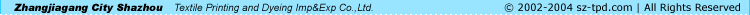 ¡¡¡¡Jiangsu Shazhou Textile Printing and Dying Group,its original name is Zhangjiagang City Shazhou Textile Printing and Dyeing Imp.&.Exp.Co.,Ltd.Earlies name was called Zhangjiagang City Printing and Dyeing Factory,eatablished in 1976.Its fixed assets is 5000 million.The company covers an area of 600,000 square meters.There are more than 3000 workers.The company gather weaving,printing and dyeing and garment,annual production capacity is about 1000 million meteres,annual sales excess 1.8 billion,annual export reach to 85 million u.s.dollars.The company mainly produce cotton flannel,cotton sheet,poplin,stretch fabric,drill,T/C,spun rayon fabric and so on.expecially for cotton flannel and spun rayon.95% of them is exported to over 80 countries and regions.The company passed Import & Export rights in 1993,and established Printing and Dyeing Imp.&.Exp.co.,ltd in 1997 and established Shazhou Textile Printing and Dyeing Group in 2006.The trade mark ¡°PIPA DANCE¡± obtain Jiangsu Province Suzhou City Famous Brand production Certification,which is the most popular in the international market.The company passed ISO9001:2000 in 2006, and OEKO-TEX STAND100D in 2003 ,and ¡°Clean Culture PRODUCTION¡± of Jiangsu Province Suzhou City Envirement protection Bureau in 2004.