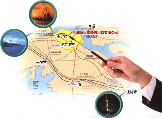 张家港市沙洲纺织印染进出口有限公司,地处富饶的长江三角洲南岸,位于闻名中外的张家港市中部,交通便捷,204国道擦肩而过,距沿江高速入口仅10分钟,离张家港港口、保税区30公里,1小时内可达苏、锡、常市区;1.5小时到达上海虹桥机场,境内有连接长江的内河,可达整个长江流域的各大中城市,具有较强的货物疏散能力